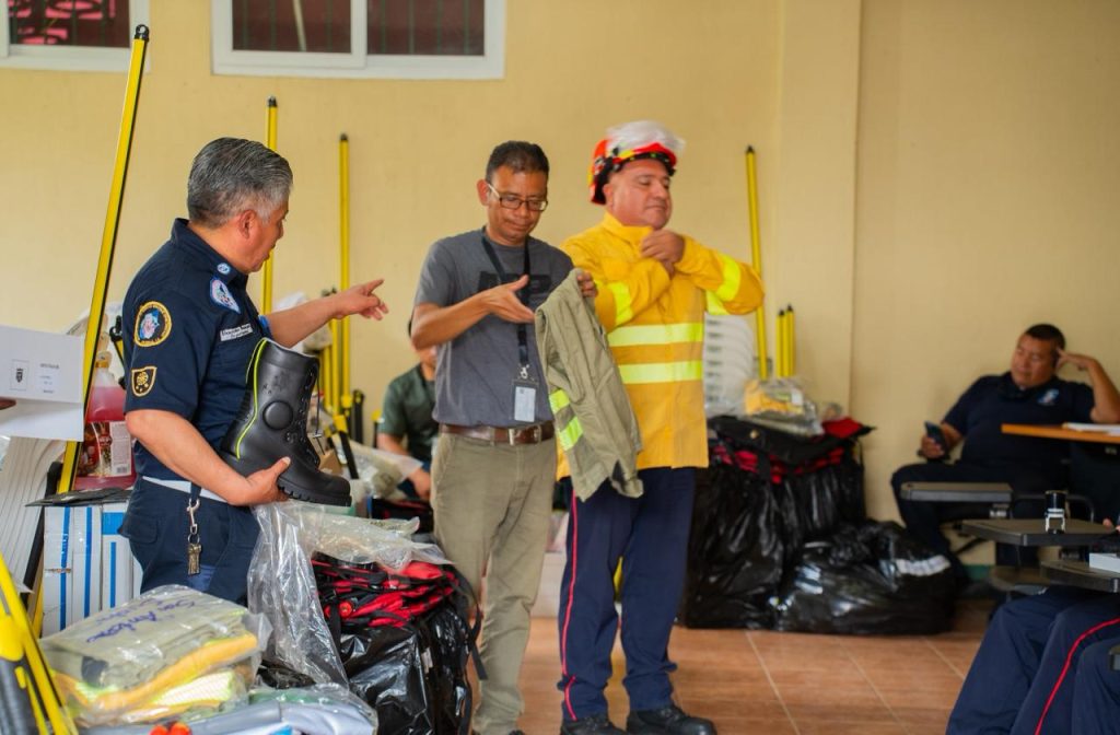 Entre los equipos entregados se encuentra indumentaria especializada para el combate de incendios forestales, como cascos, chaquetas, pantalones, bandanas, botas, guantes, mochilas de agua, mochilas para suministros y herramientas manuales, indispensables para una atención segura y eficaz de este tipo de emergencias.